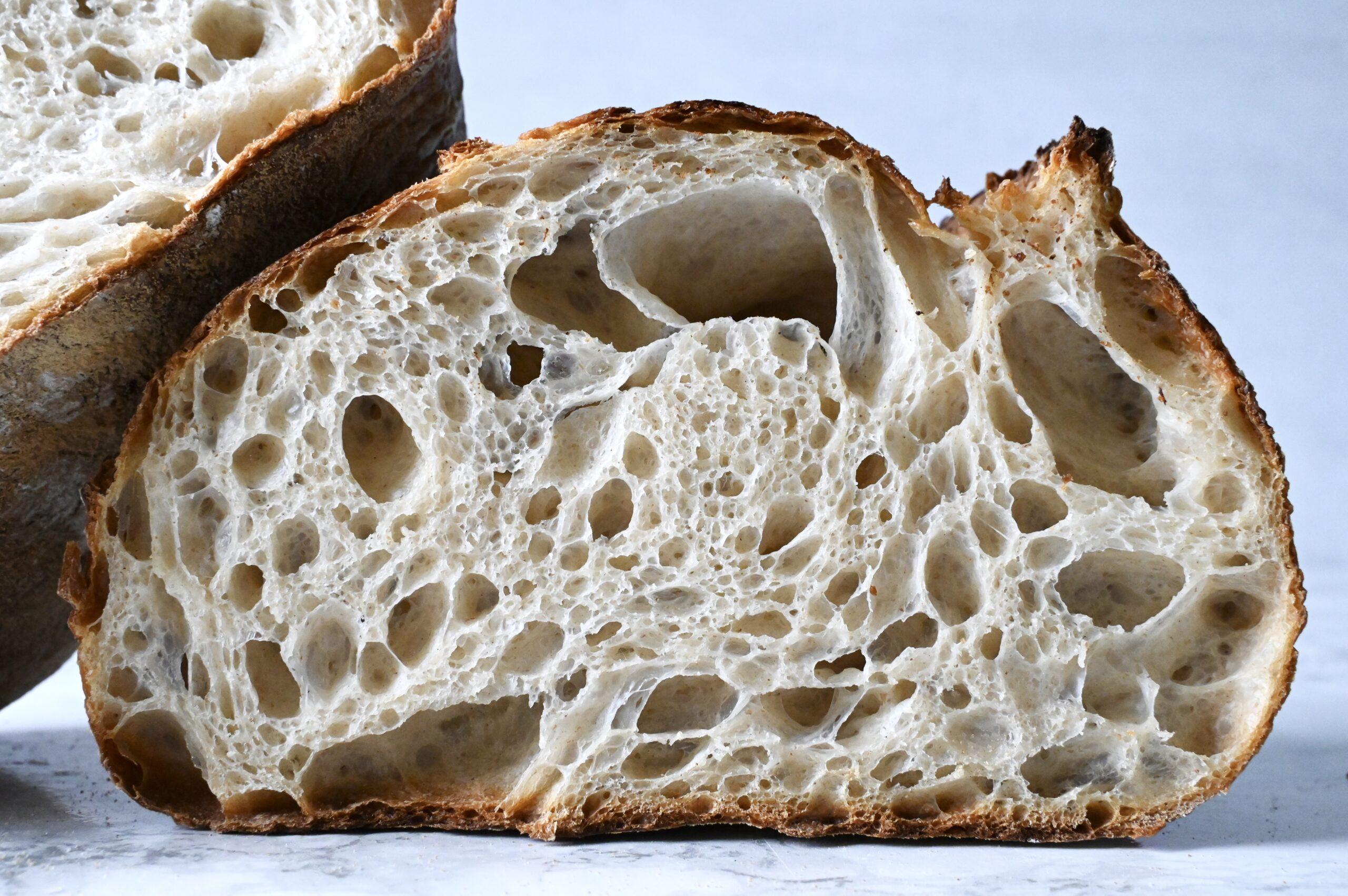 Ich liebe eine luftige offene Krume. Und neben den wichtigen Essentials wie der Verwendung proteinhaltigen Mehls mit hohem W-Wert, ordentliches Dehnen & Falten, Laminieren etc., gibt es einen recht unbekannten beginnerfreundlichen Trick, um sich eine besonders schöne offene Krume zu zaubern: Das Hinzufügen des Eiweißes eines Eis.